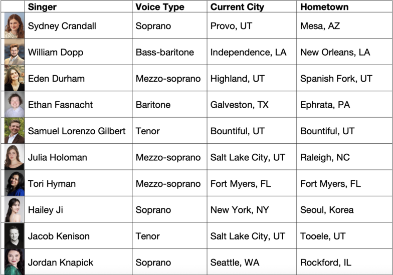 The following 28 singers are registered to compete in the November 1, 2025 Utah District Competition.